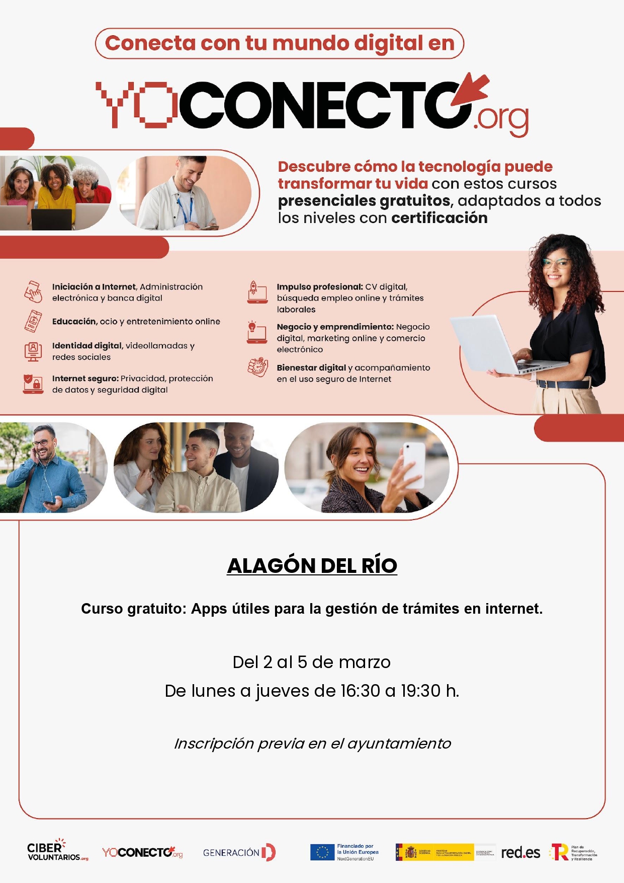 Se informa a todos los vecinos que, del 2 al 5 de marzo se llevará a cabo un curso sobre Apps útiles para la gestión de trámites en internet, dirigido a toda la población.